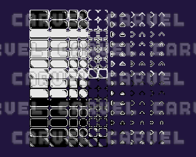 Set of 168 buttons sprites in 1bit style, they are monocromatic and use black and white as base color. This set are separed in 14 diferent designs with 2 color versions Original style and inverted sytle making 7 designs for each color version;