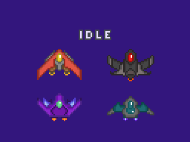 Now it have 4 Character selectable Ships with their full set of animations. It also have extras sprites sheets for some shot levels with 3 alternative colors for them. Soon i will add more packs of this shoot em up set so i hope everyone can enjoy them.